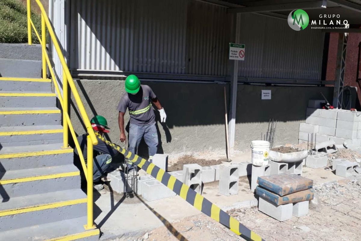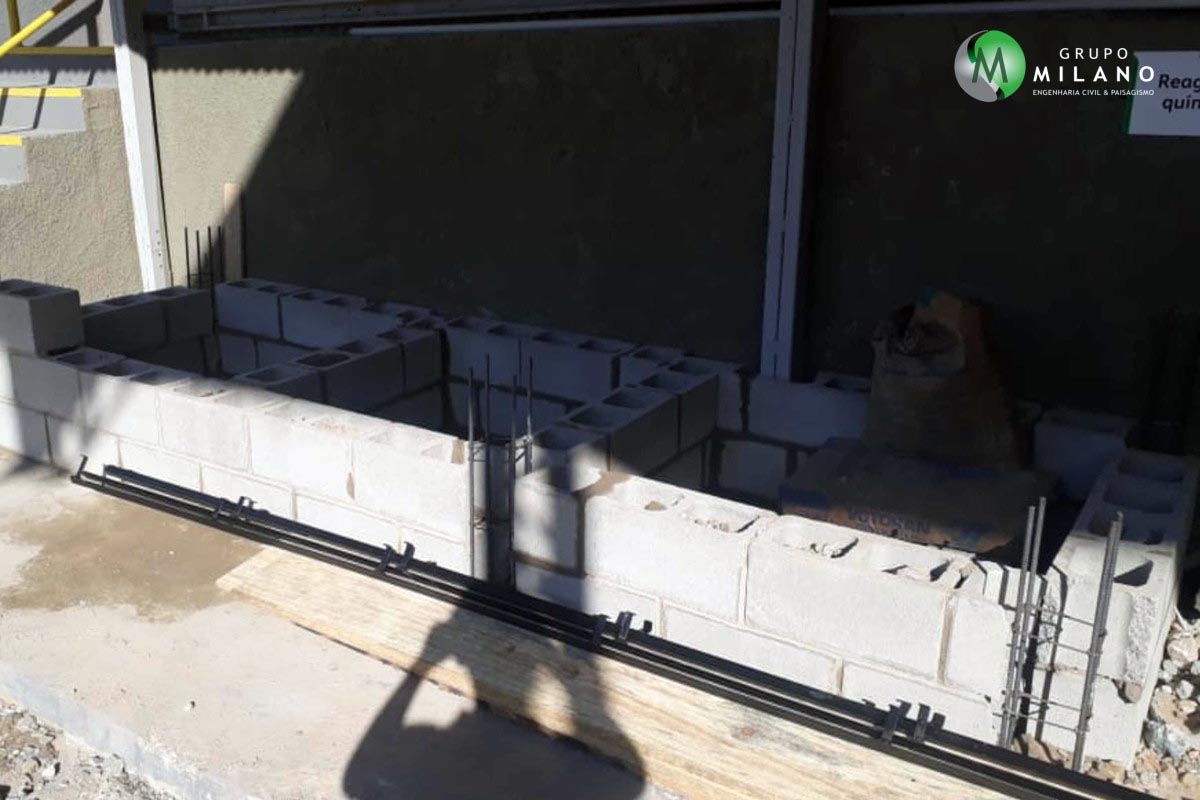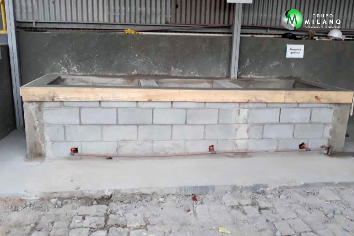 Projeto para indústria de bebidas no interior de São Paulo. Diques de contenção de produtos químicos para prevenção de acidentes. Obra realizada em julho de 2020.
